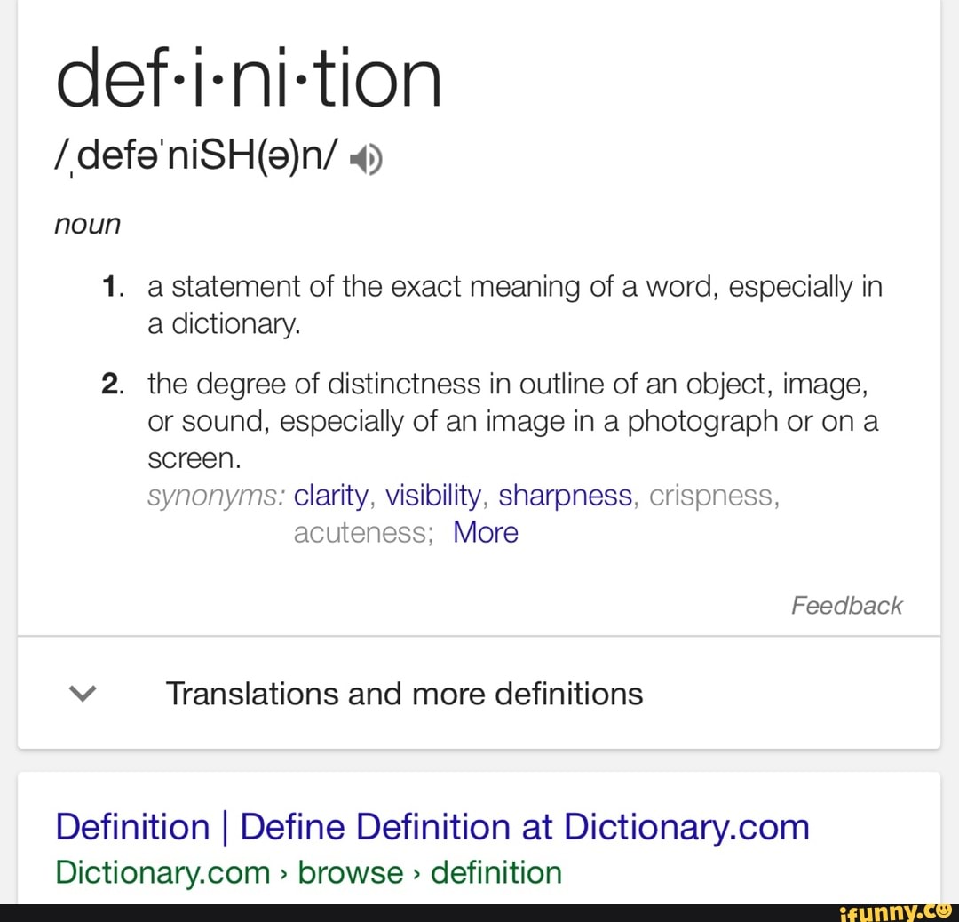 Def I Ni Tion 1 A Statement Of The Exact Meaning Of A Word Especially In A Dictionary 2 The Degree Of Distinctness In Outline Of An Object Image Or Sound Especially Of An Image 3 especiallyfor a particular person, purpose.