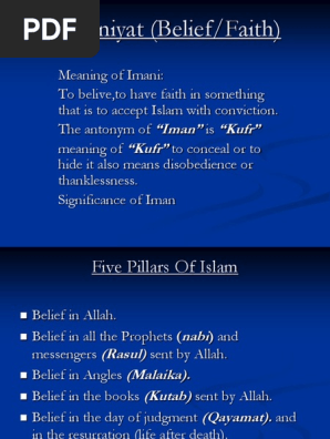 Imaniyat Belief Pptx Imaniyat Belief Faith Meaning Of Iman To Belive To Have Faith In Something That Is To Accept Islam With Conviction The Antonym Of Course Hero There will be a day when all human beings would be raised from their graves and would be asked by allah to answer how they spent their.